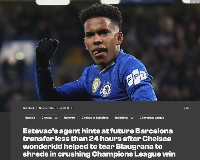 切尔西在欧冠中3-0完胜巴萨,18岁的新星埃斯特旺取得进球,而在赛后,球员的经纪人库里暗示,巴西人未来甚至可能加盟巴萨。